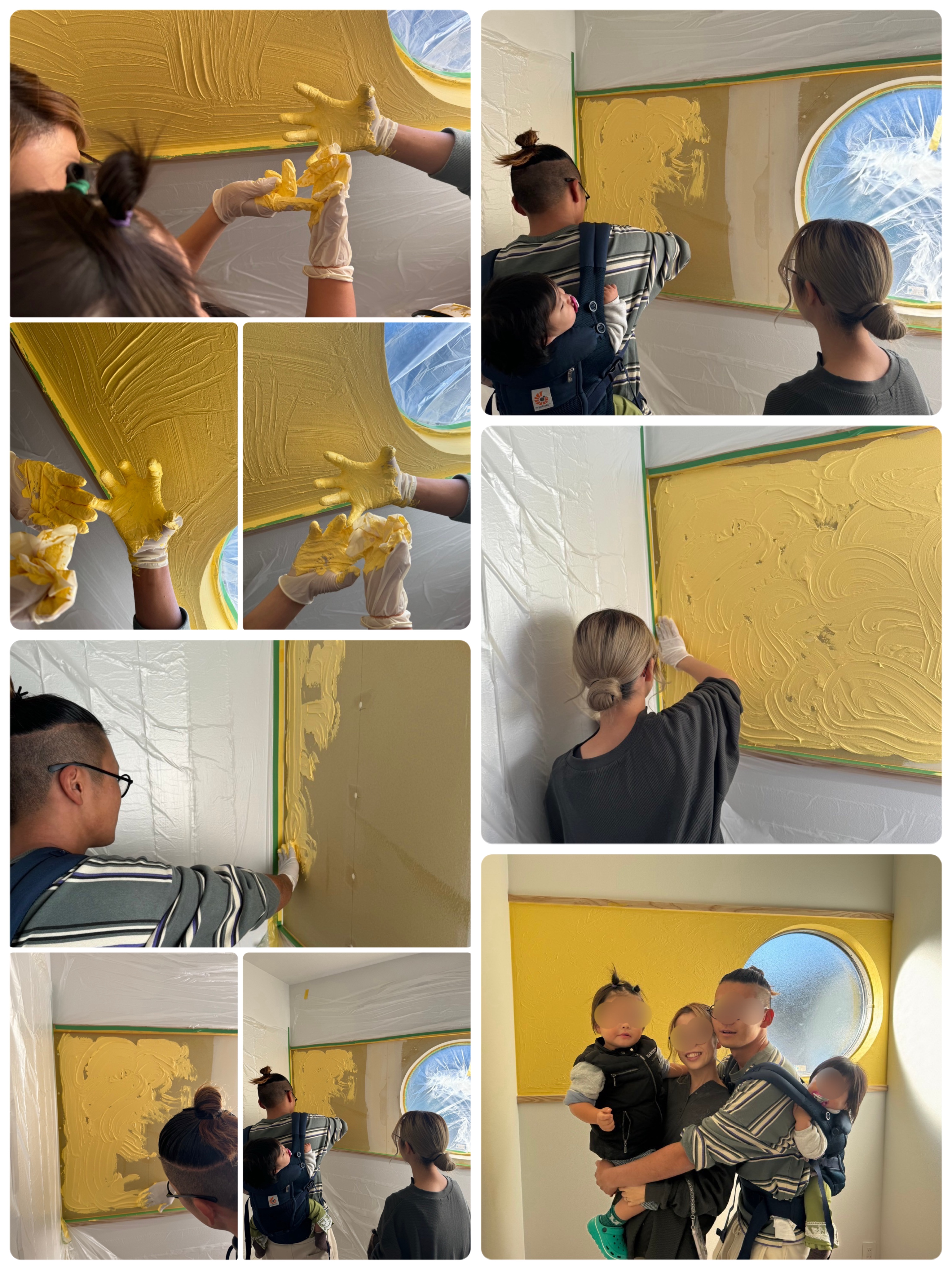 手袋付けて、家族みんなでワイワイ手塗り。