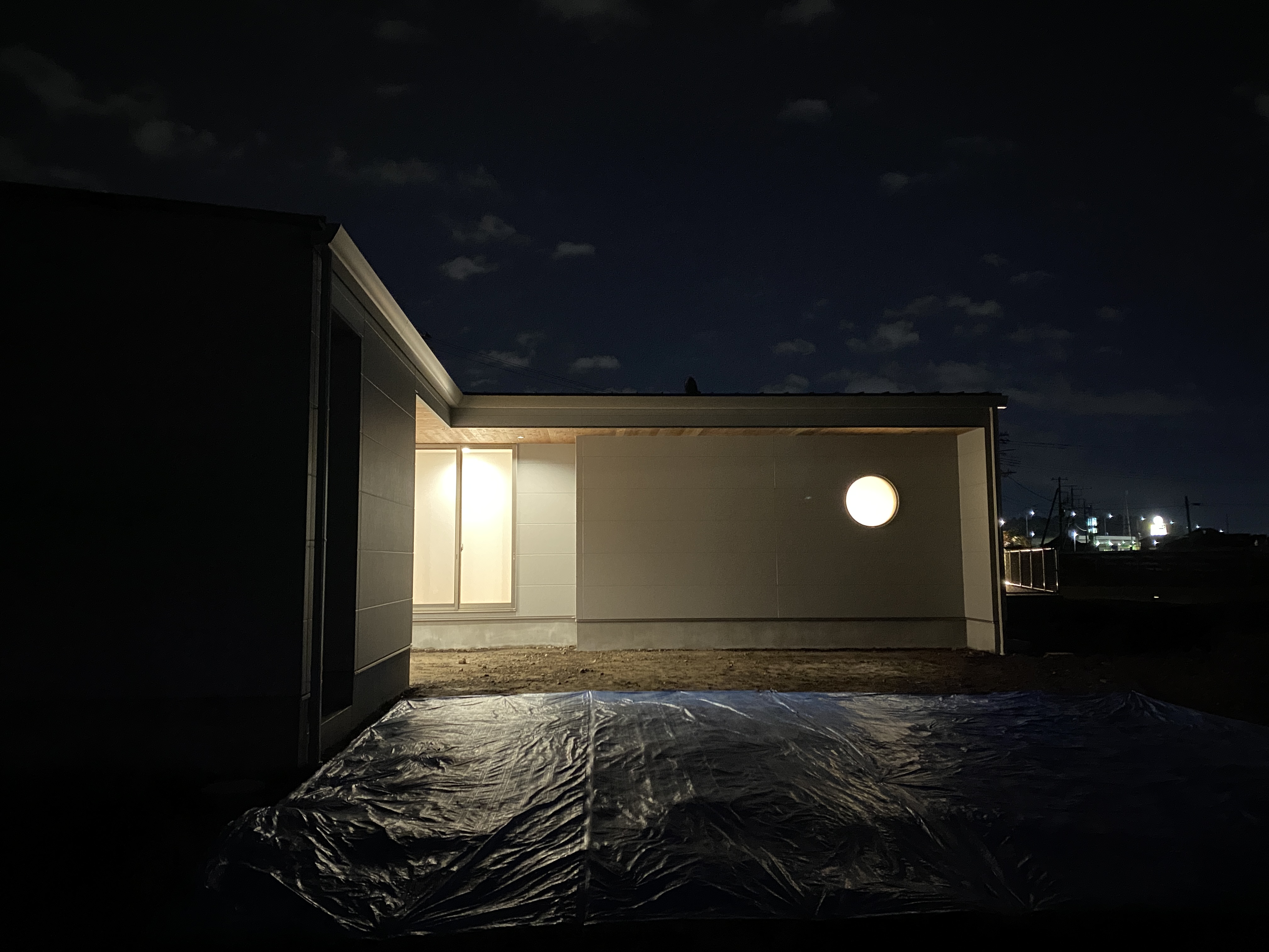 夜になると、お月さまを思わせる丸窓が